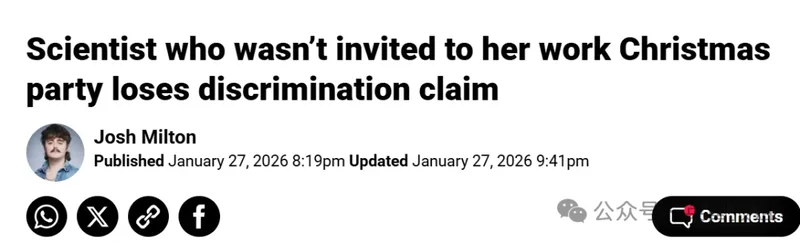 一名自称是社恐的科学家,因为没被公司邀请参加圣诞派对,把雇主一纸告上了法庭?