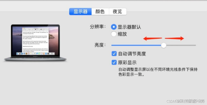 自定义亮度:页面上会出现亮度滑块,拖动调节即可,同时可以开启自动亮度和原彩显示,屏幕会根据环境光线和时间变化,自动调整色温与亮度,长时间盯着屏幕也不容易累。