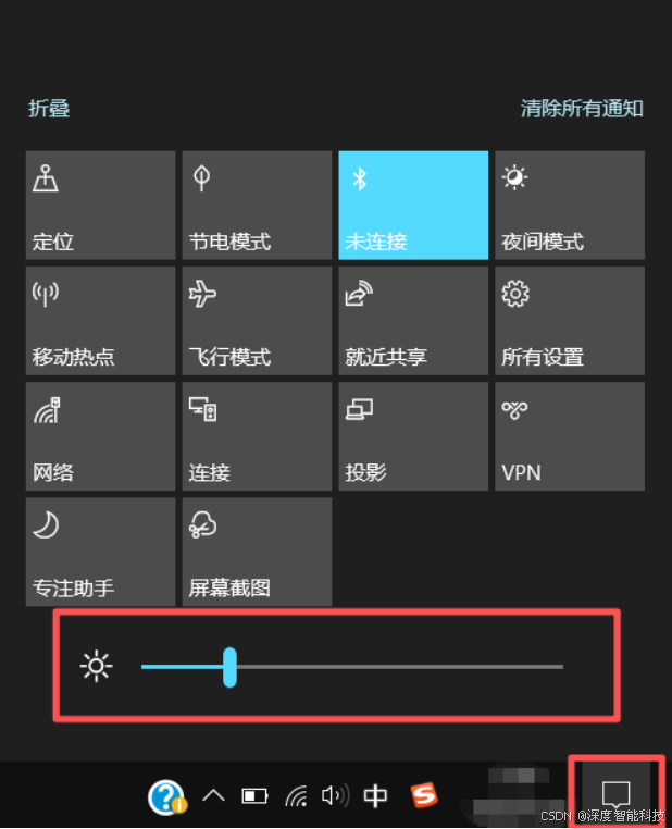 - 打开快捷设置入口:点击电脑屏幕右下角的通知气泡图标,也就是时间日期旁边的小方框,也可以直接按下Win+A组合快捷键,一秒弹出快捷设置面板。