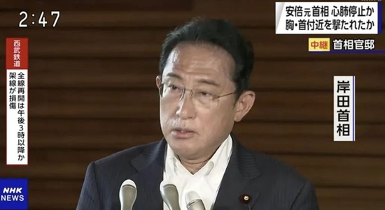 为7月10日日本参议院大选造势的内阁成员已经全员返回东京。岸田文雄也返回东京,他称,医护人员正在全力救治,“衷心祈盼安倍能捱过这场难关”。