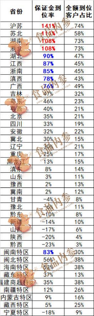 与会议内容一并流出的还有娃哈哈各省缴纳保证金的完成比例,令人意想不到的是,虽然月余的时间里,一切都不明朗,但有些省份的经销商还是“力挺”了宗馥莉的。