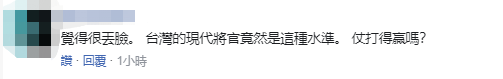 还有人称,“你小学老师应该在哭。”“觉得很丢脸,台湾的现代将官竟然是这种水准,仗打得赢吗?”↓