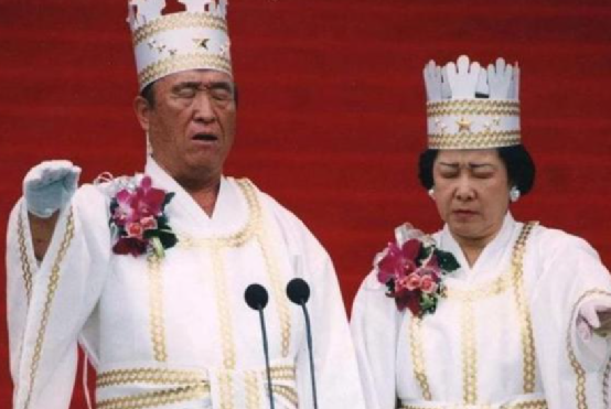 (图为“做法”中的韩国统一教教主文鲜明及其妻子韩鹤子)
