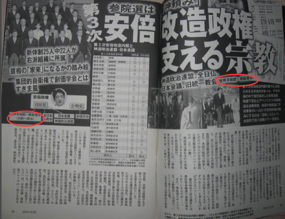 有日本媒体亦曾于2017年报道安倍任期内第三次改组内阁时提到,安倍当时希望进一步支持宗教并依靠宗教的力量执政。“韩国统一教”(“世界和平统一家庭联合会”)则是当时被日本媒体点名的一家是与安倍关系紧密的宗教团体。