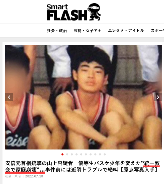 随后,日本另一家八卦杂志《Flash》也在关于安倍遇刺案的最新消息中提到了韩国统一教,称山上彻也曾对人表示导致自己“家庭崩坏”和令自己想行刺安倍的是该宗教团体。该媒体还称韩国统一教的日本分部已经“承认”山上彻也的母亲是该团体的成员。另外,该报道还称山上彻也原本在学生时代是个“优等生”,父亲很早就去世了,他一直与母亲生活在一起。