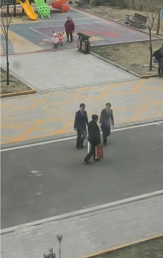 1月30日,网友发布视频称,河北石家庄雅都园小区内,有物业工作人员摆拍帮老人提东西的画面。