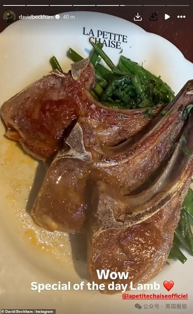 看起来小贝非常喜欢这家餐厅,这家餐厅的INS界面还置顶了一张他和老板的合影。