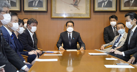 7月11日,日本首相岸田文雄出席自民党党内高层会议。视觉中国供图