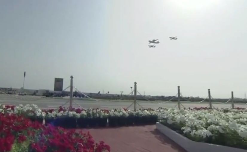 在阅兵式上,巴基斯坦武装部队和其他安全部队的三个分遣队列队行进,战斗机进行特技飞行表演。