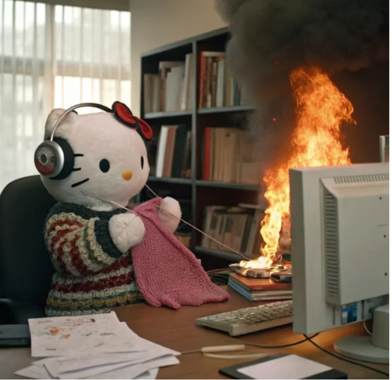 网友制作的钩针meme:“世界纷纷扰扰,我自钩钩针针。”(图/小红书网友@你在干嘛呀)