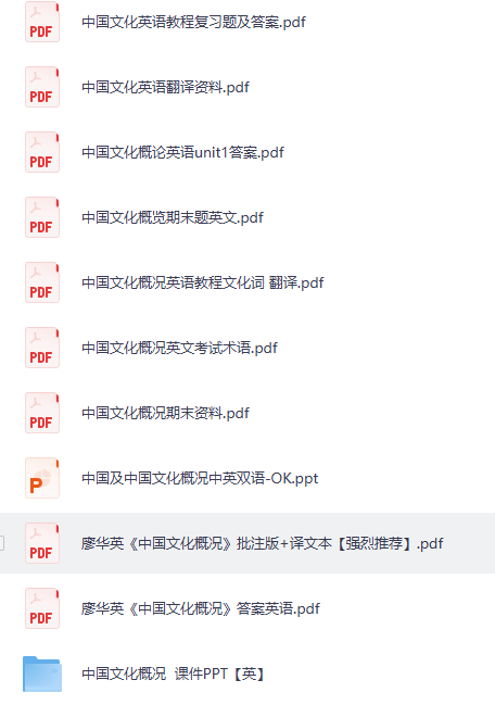 廖华英《中国文化概况》修订版+批注版+译文版+笔记+课件PPT+配套题库 PDF下载地址↓↓