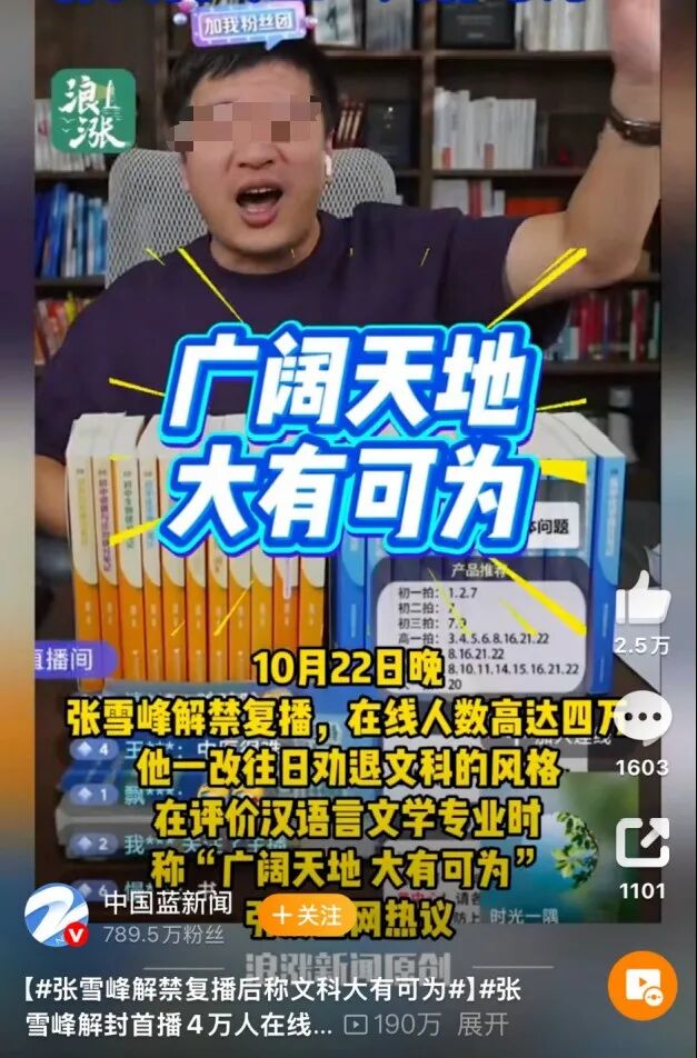 经历两次处罚后,复播的张雪峰明显收敛了许多,画风突变改走低调路线,甚至公开改口“文科也很好,大有可为”,与之前的偏激言论判若两人。