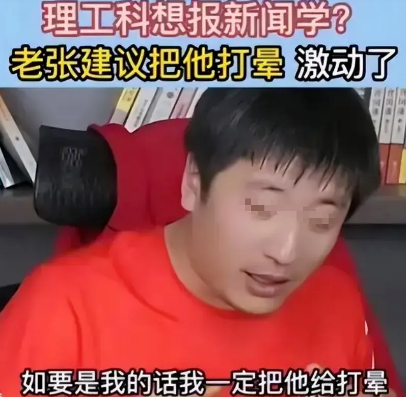 最经典的莫过于两年前的“新闻学争议”,面对家长咨询,他直言“孩子非要报新闻学,我直接把他打晕”,甚至抛出“闭眼摸一个专业都比新闻强”的观点。