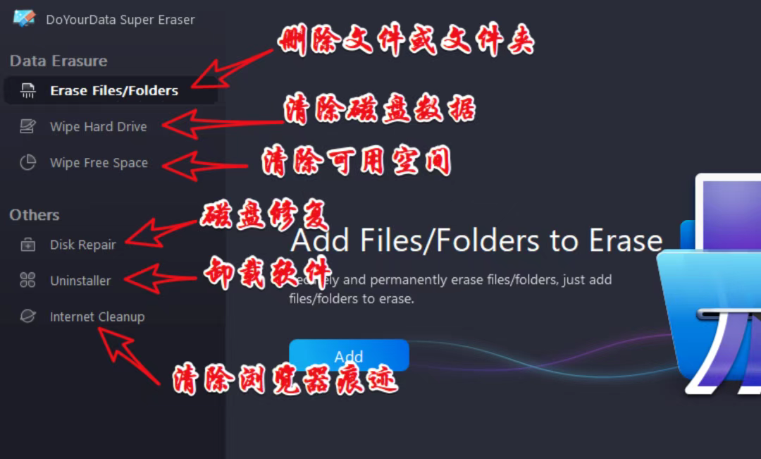 在卖、送或丢弃旧电脑、硬盘、U 盘前,使用 SuperEraser 擦除个人数据,能有效保护我们的隐私。就像在把房子卖给别人之前,把所有的秘密都清理干净一样。