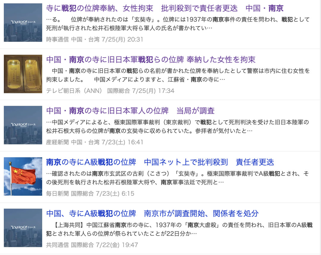 此事目前已经传到日本,时事新闻社、产经新闻、每日新闻、共同通信等都有发稿,但这些在雅虎能够看到的新闻却并没有上雅虎新闻的头条。