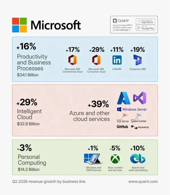 首先,支撑微软万亿市值的关键是什么?是Azure云业务。这是微软的“现金奶牛”,也是AI算力的基石,但最新数据显示,Azure的增速从上季度的40%微降至39%。你没看错,只是降了1%,但在华尔街眼里,这1%就是“原罪”。