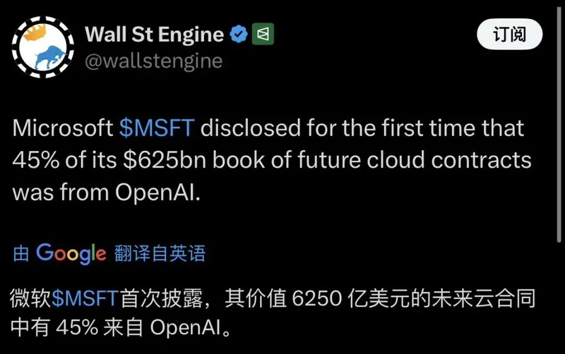 三是,致命的“单一客户依赖”。微软财报首次披露,其6250亿美元的“未确认收入”中,45%与OpenAI直接相关。这意味着什么?一旦OpenAI转向谷歌、亚马逊,或被美国政府强制拆分,微软的AI布局将瞬间崩塌。