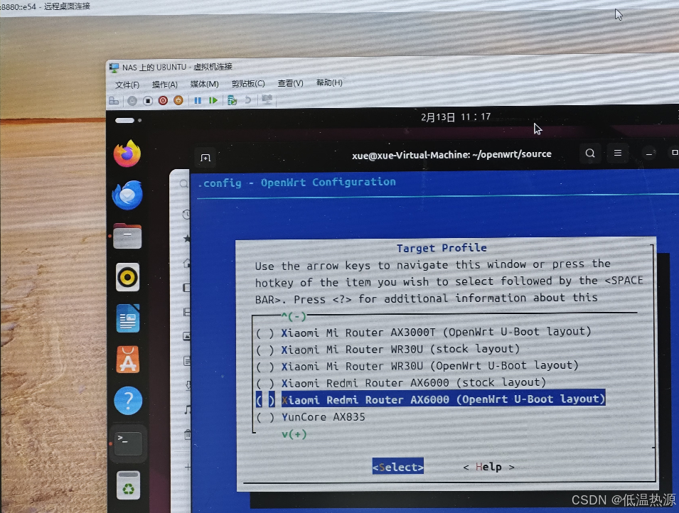 笑死 是上班时候开远程桌面连NAS机顶盒在里面开个hyperv虚拟机跑ubuntu编译出来的。hyperv导入导出不方便还不能粘贴,最后只能在虚拟机里开浏览器用搭的alist上传到主机
