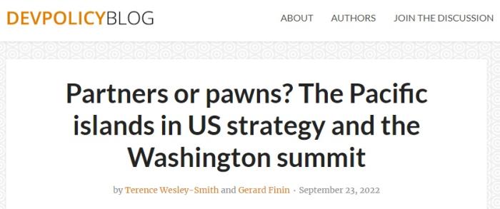 伙伴还是棋子?美国战略中的太平洋岛国以及华盛顿峰会。图片来源:澳国立大学DEVPOLICY网站截图