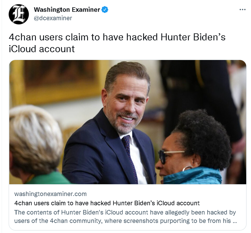 自昨天(7月10日)以来,美国网民就被社交网络上一则极为重磅话题吸引住了眼球。原来,有来自美国4chan论坛的网民宣称,他们论坛的大佬已经成功“黑”掉了美国总统拜登的小儿子亨特的苹果手机云盘,并在里面看到了大量亨特的“黑料”。