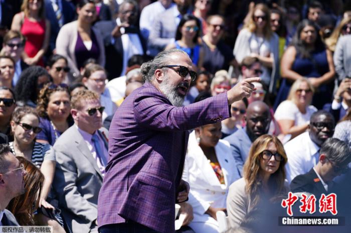 中新网7月12日电 综合美媒报道,当地时间11日,美国总统拜登在白宫发表庆祝控枪法律通过的演讲时,被台下一观众打断并呵斥道,“你必须做得更多”。