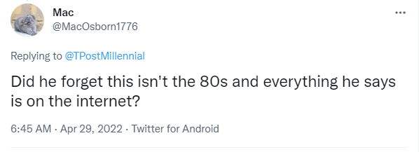 对此,一位网民吐槽道,“他是不是还活在80年代?不知道自己说的话都能在互联网上找到。”