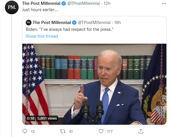 值得注意的是,就在几个小时前的另一场发布会上,拜登对于媒体的态度并非如此。