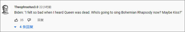 此外,也有人取笑拜登的“老糊涂”。评论这样写道,“拜登:当我听说女王死了,我很难过。现在谁来唱《波西米亚狂想曲》(皇后乐队成名曲)?”