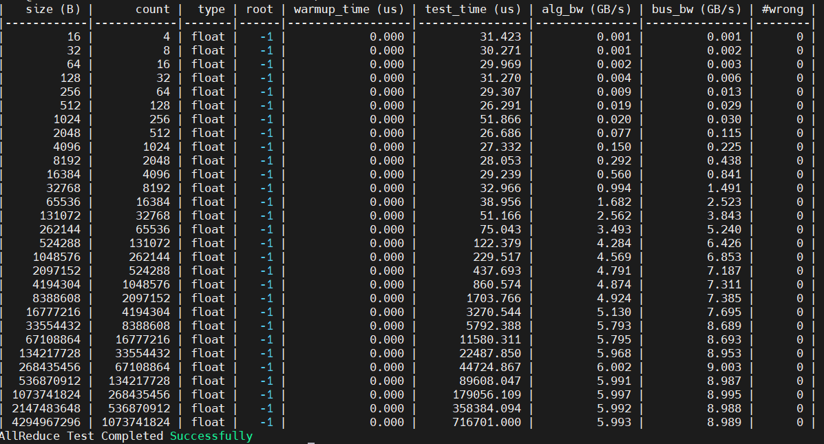 printf("AllReduce Test Completed Successfully\n");
