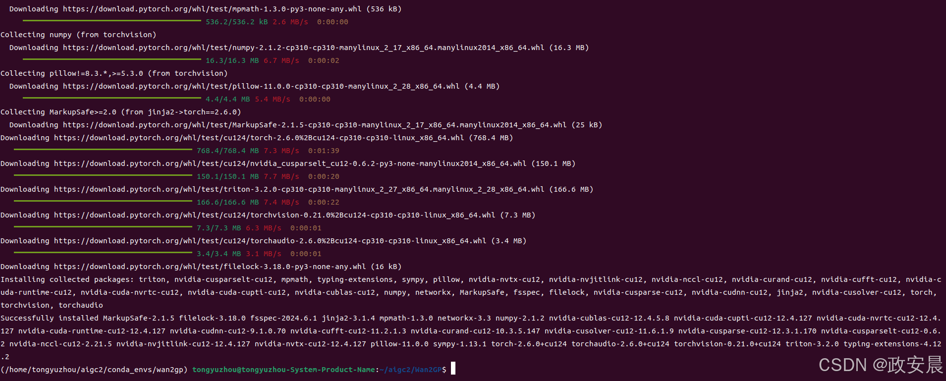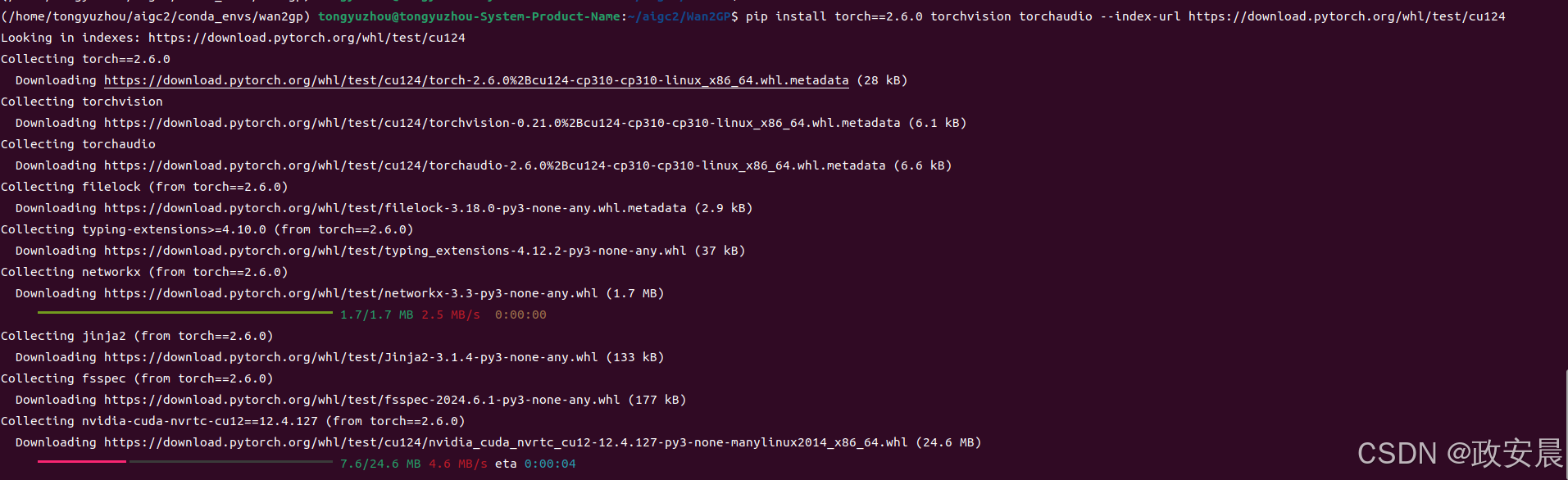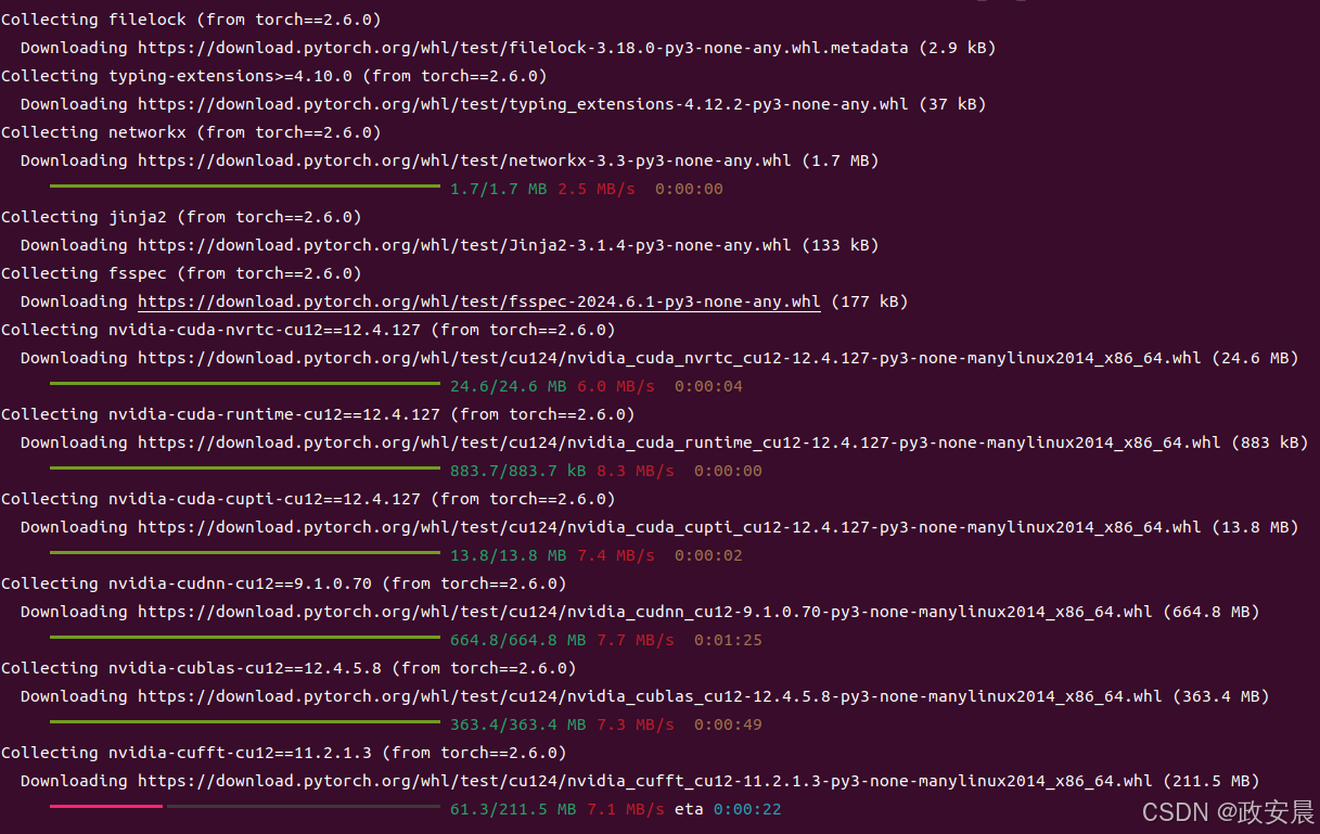 pip install torch==2.6.0 torchvision torchaudio --index-url https://download.pytorch.org/whl/test/cu124