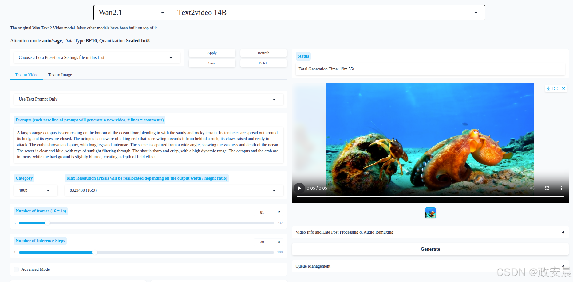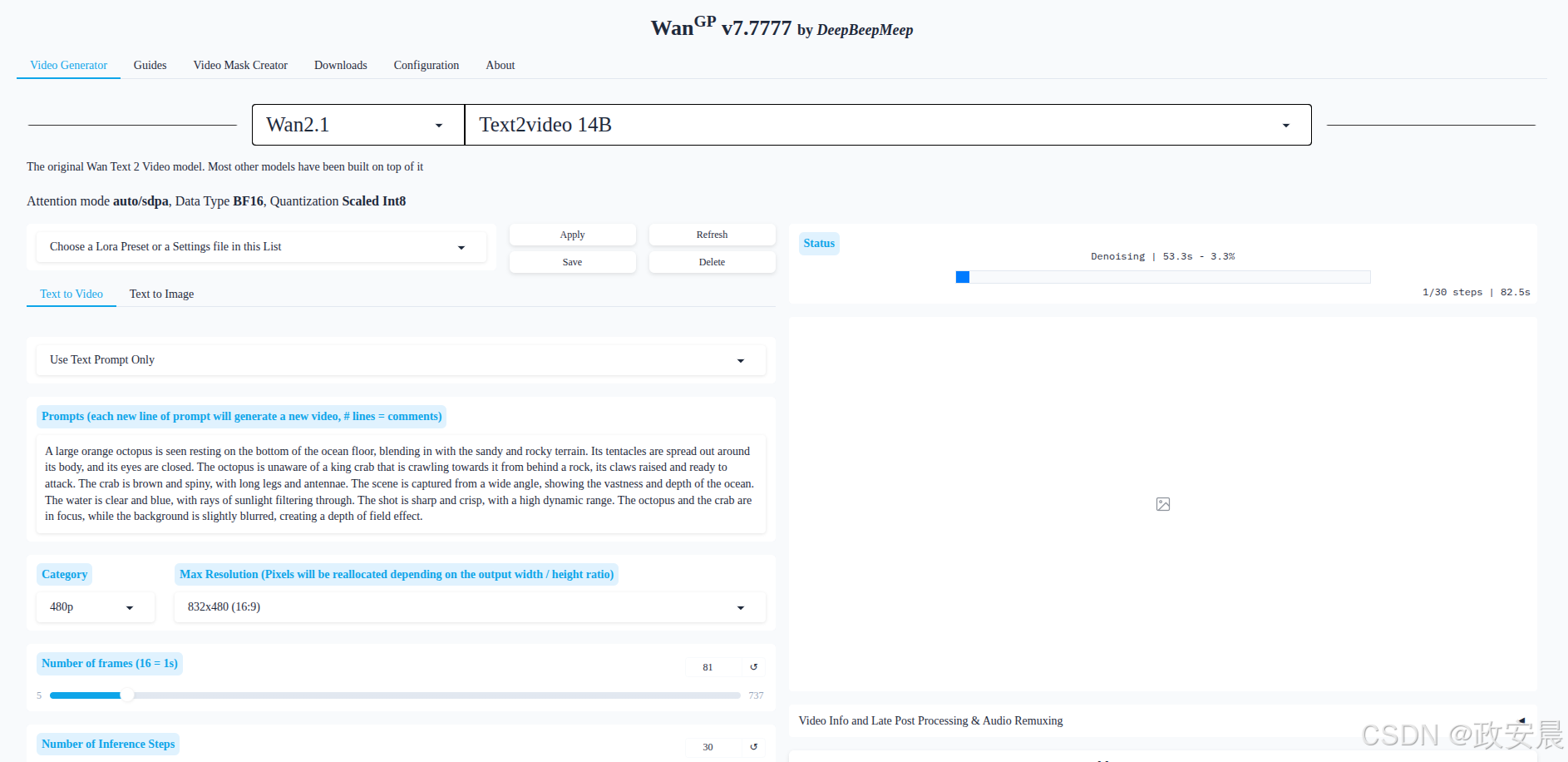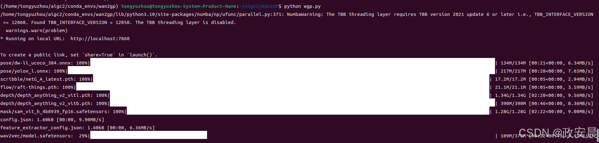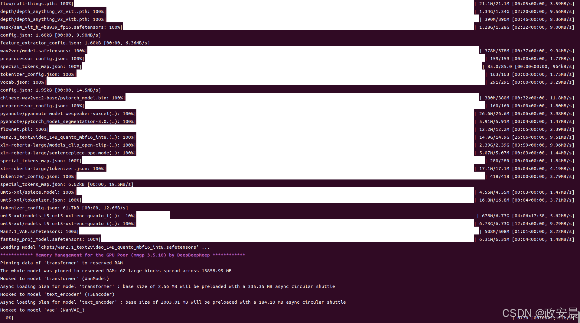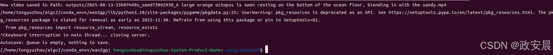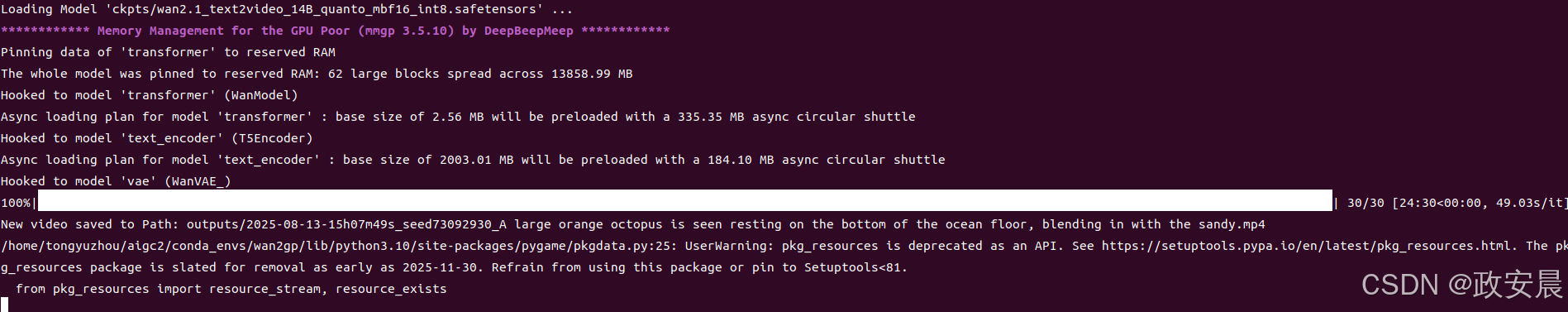 模型下载完成后,WanGP服务开始推理: