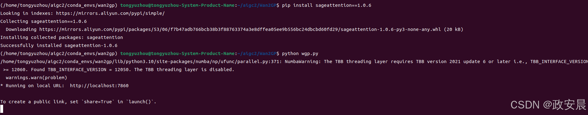 pip install sageattention==1.0.6