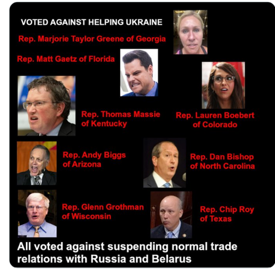 报道还称,这些人大多数都是共和党中的右翼,并且是前总统特朗普最忠实的支持者。比如马乔里•泰勒•格林,她在周四的演讲中哀叹“我们听到的新闻都是关于乌克兰的”,“华盛顿似乎更关心将我们的儿女送入一场潜在的战争”,而不是更紧迫的国内问题。