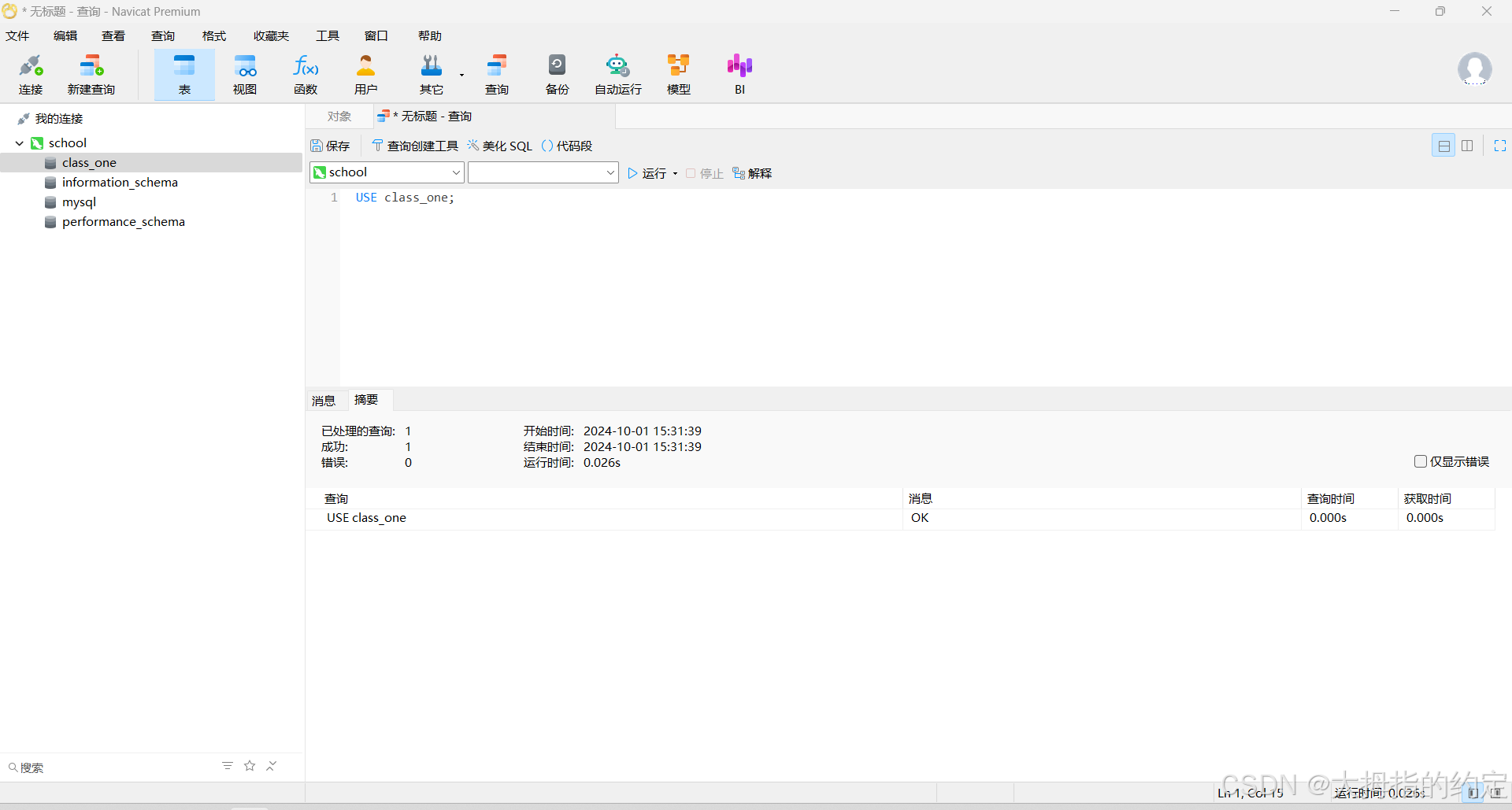 USE class_one; /* 使用数据库名 */