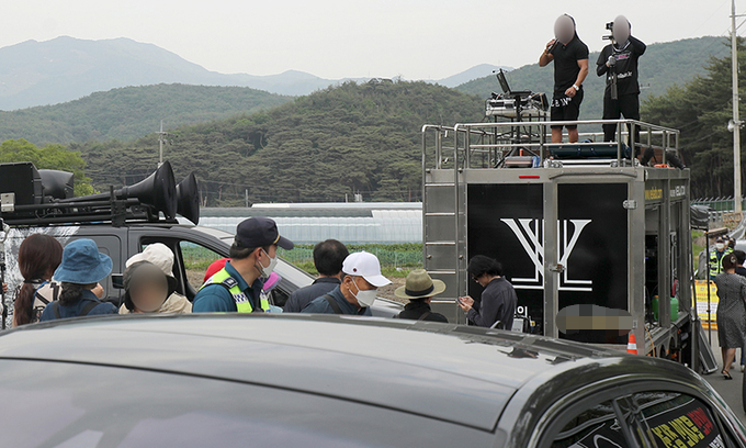 5月11日,韩国保守团体在文在寅住所外抗议。(韩媒news 1)