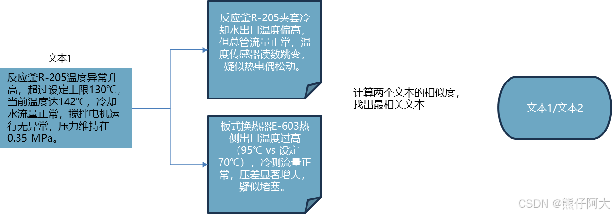 B结果中相较A结果,保持了“反应釜”的主语检索,同时,相似度排名靠前的案例均涉及“温度骤升”、“温度持续升高”等字样,相较于A结果,存在更深层次的相关性。