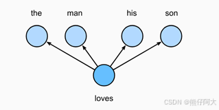 跳元模型假设一个词可以用来在文本中生成其周围的单词。例如:{“the”,“man”,“loves”,“his”,“son”}中心词为“loves”,跳元模型考虑生成上下文词“the”,“man”,“his”,“son”的条件概率。