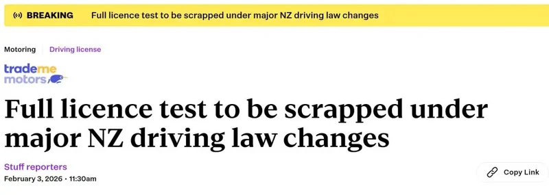 ref:https://www.stuff.co.nz/motoring/360933168/full-licence-test-be-scrapped-under-major-nz-driving-law-changes