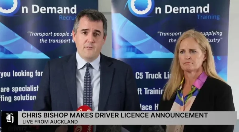 交通部长Chris Bishop和社会发展部长Louise Upston今早选择On Demand Training in Auckland发布上述消息。
