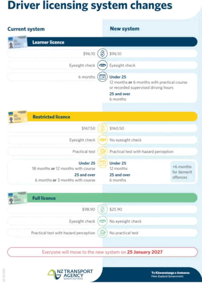 交通部再次提醒,在 2027年1月25日之前,新西兰驾驶者仍需按照现行制度完成所有考试与要求。