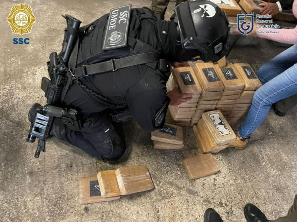 墨西哥城一名警察在收缴毒品(路透社)
