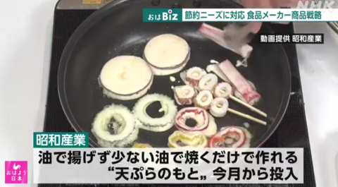 另一家日本面粉厂商昭和产业受食用油价格上涨影响,9月起推出了炸天妇罗时可节约用油量的商品。原本需要炸制才能做出的食品,用更少的油量煎制即可。日本多家食品公司都从9月开始销售家庭装商品,小包装商品已形成一股潮流。(海外网/王珊宁)