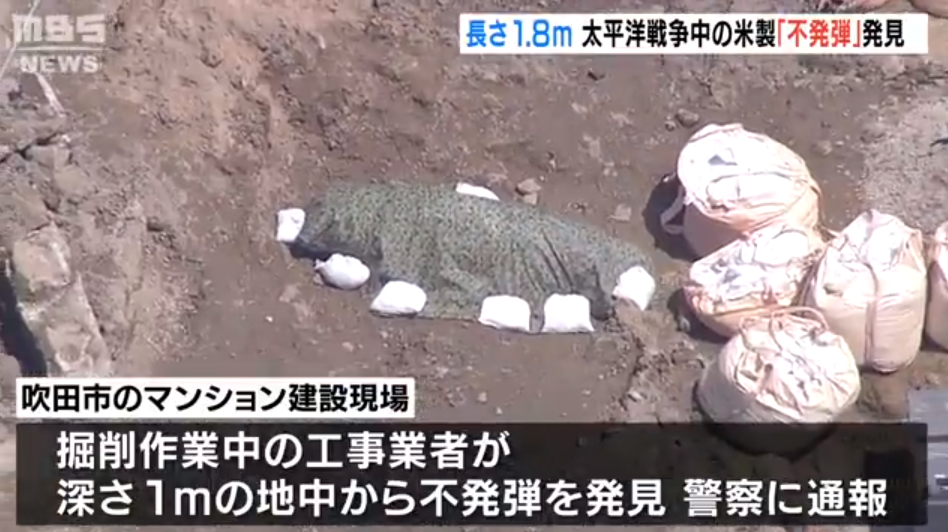 海外网4月28日电 据日本MBS新闻28日报道,当地时间27日下午2时30分左右,日本大阪府吹田市的公寓施工现场发现一枚美国制造的哑弹。