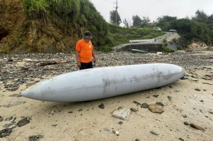 原标题:日本海岸突现不明燃料箱:散发油气,印有美军航空母舰标志