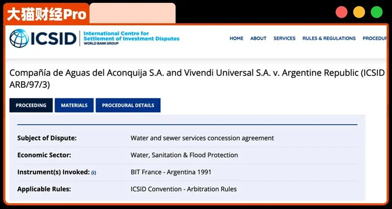 2000年,ICSID裁决,阿根廷败诉,被判赔1.05亿美元,阿根廷虽然一直上诉,但是并没有得到有利判决。