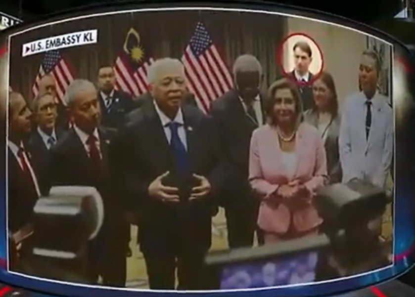 然而,人们只要仔细瞧瞧佩洛西这一行的合照,就可以看到小保罗‧佩洛西的身影。但是,有趣的是,一路紧跟佩洛西亚洲行报道的美国媒体,却对此没有一点报道。