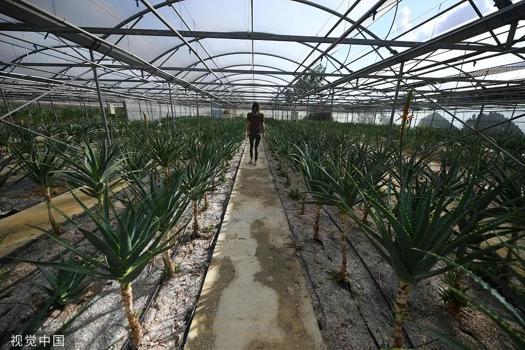 当地时间2021年10月4日,法国西南部蒂尔,一家企业在温室里种植作物。(视觉中国)