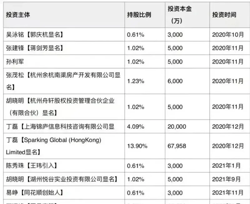 同花顺、阿里系的一众大佬等等。
