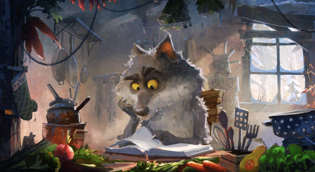 于是,爸爸为了让儿子改变对狼的观感,开始了编故事,而我们的主角小狼也正式登场。