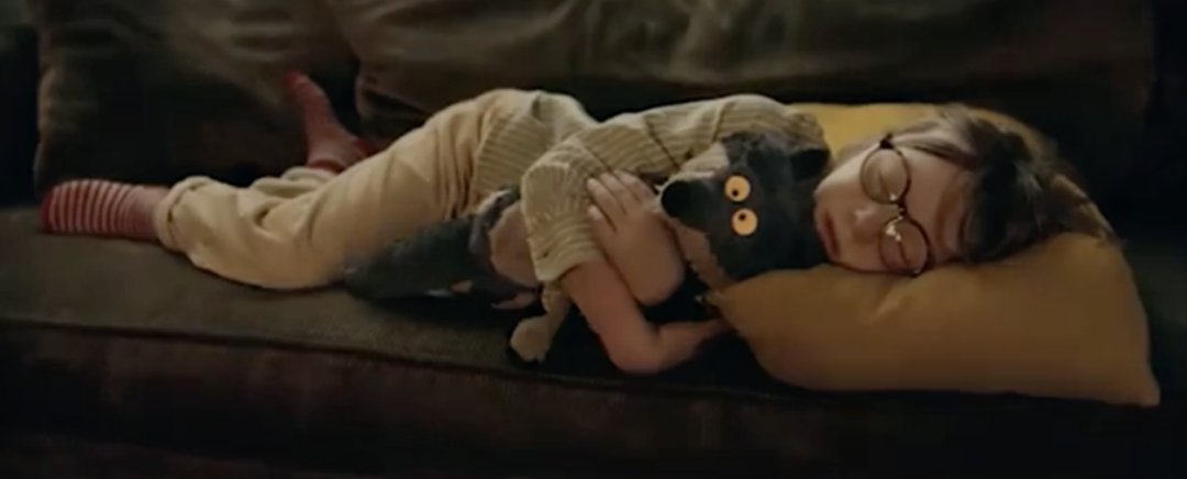 广告的结尾,是小男孩抱着小狼睡着了。